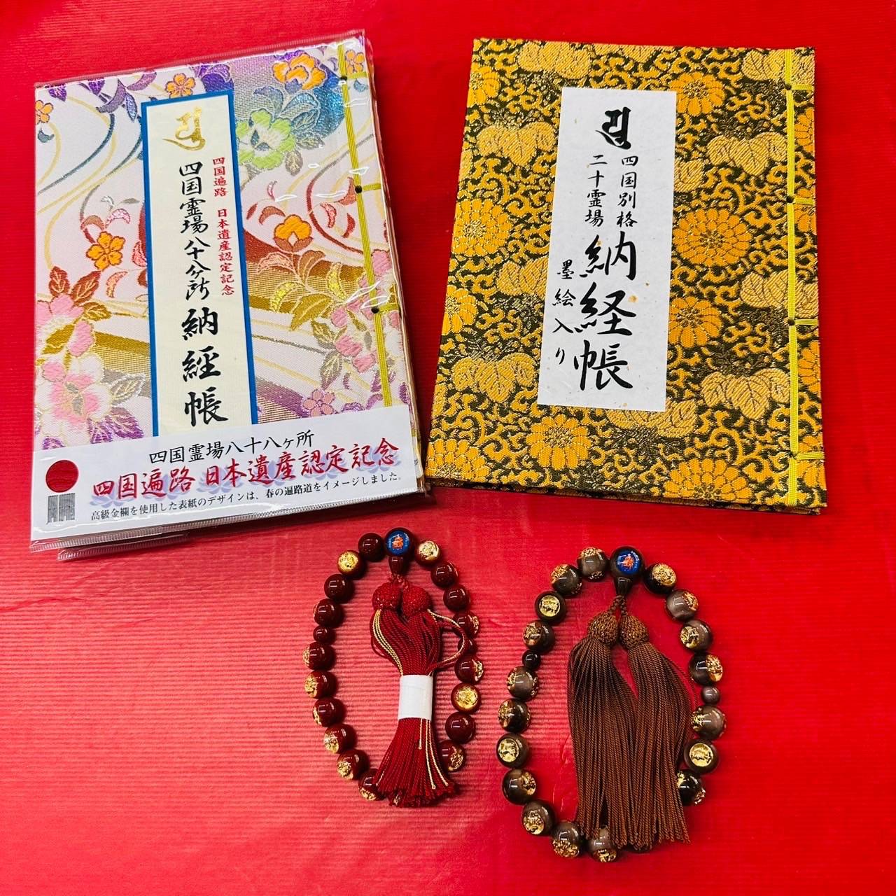 谷汲山華厳寺にお越しの際に「巡礼に必要な数珠等の品を持ってくるのを忘れてしまった」「せっかく来たので、巡礼用品一式をきちんと揃えておきたい」といったお困りごとやご要望にお応えする、掛け軸をはじめとした多種多様な表具や骨董品を販売するお店を営んでおります。巡礼用品については一般的に必要とされる品を取り揃えており、収納するためのかばんまでご用意しています。掛け軸をご購入いただいた方へのプレゼントも提供し、フーチンや矢筈を無料でご利用いただけます。